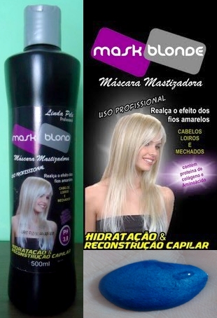 O que o fabricante promete: Foi desenvolvida com proteína de colágeno e aminoácido, que em sua ação realça o efeito dos fios loiros e mechados, balanceando e hidratando-os. Máscara matizadora destinada a todas as mulheres que sonham com aquele loiro perfeito, longe do tom amarelado. Sem química, de fácil aplicação. Faça você mesma em casa. Após a lavagem dos cabelos com o shampoo adequado ao seu tipo de cabelo ou após o processo de descoloração, aplique uma quantidade suficiente na extensão dos fios por 20 minutos e em seguida enxágue levemente. 500ml – R$89,00 (preço promocional, atualmente, aqui)